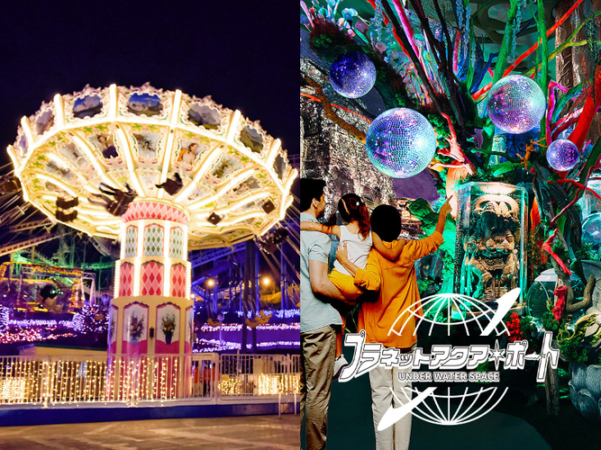 ③ 20種類以上のナイトアトラクションと新アクアリウム施設「プラネットアクア・ポート」でロマンチックに夜の遊園地を楽しめる!「サイクルモノレール」はイルミネーション仕様に!