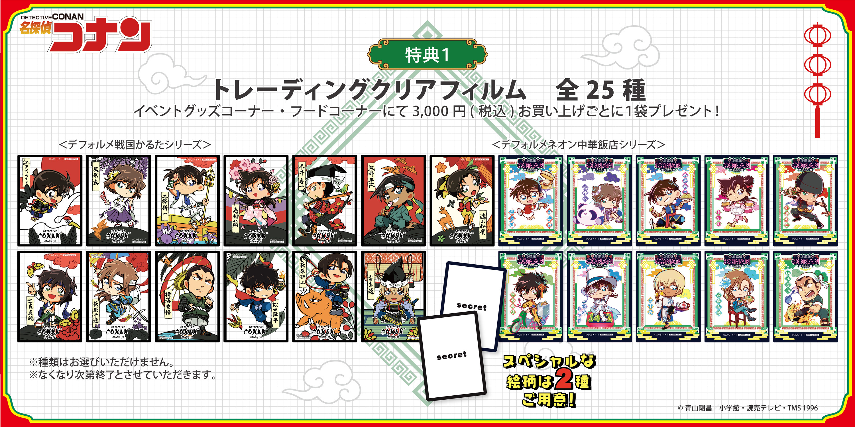 戦国衣装を身にまとったキャラクターに加え、ネオン中華飯店のテーマも登場。今回もコナンの世界観を存分に表現した催事限定コラボフードも販売いたします。
