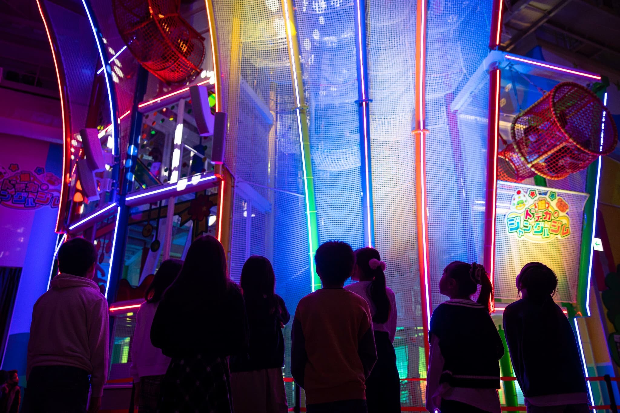 巨大ジャングルジムのスケール感と、光と音が織りなす幻想的な演出は圧巻です。