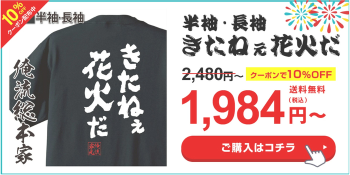【”5月28日”『花火の日』に合わせ、俺流総本家厳選の花火Tシャツ10%OFFクーポンをご提供!】- 楽天ランキング1位!多数受賞の俺流総本家から送る「夏の始まりを彩る一日」 花火の日限定キャンペーン!
