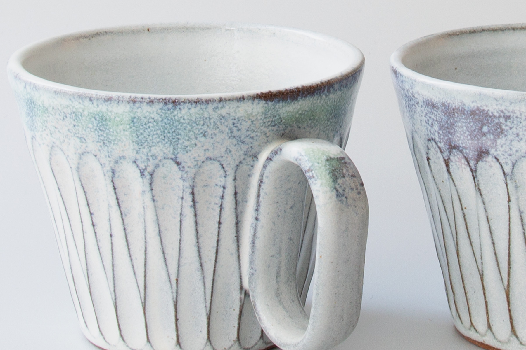 Wired Beansから新しく発売する「生涯を添い遂げるマグ 丹波焼 しのぎ」。丹波焼は、平安時代から鎌倉時代にかけて開窯したといわれ、越前、瀬戸、常滑、信楽、備前とともに日本六古窯の一つに数えられています。今回の新商品である「丹波焼 しのぎ」は、民藝の指導者で陶芸家の河井寛次郎の弟子で戦後の丹波焼の復興に尽くした生田和孝がもたらし新たな丹波焼の伝統技法となった「しのぎ」を、マグの下外側の形状にあわせて一点一点手作業で上下対称に施しています。しのぎが無い部分との表情の違いを表現しながら、マグのベース色にはわら灰のホワイトマット釉を使用。しのぎが無い部分としのぎ部分の稜線部分に表現された色が、ベース色のホワイトマットの柔らかい表情の中で、しのぎの立体的な表情をより強調し、上質さとマグの立体感や存在感を際立てています。
