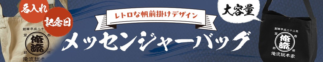 「おもしろTシャツの俺流総本家」を展開する株式会社太陽は、昭和の商店文化をモチーフに、名前や屋号を入れて作れる「帆前掛け風メッセンジャーバッグ」を対象とした期間限定セールを開催いたします。