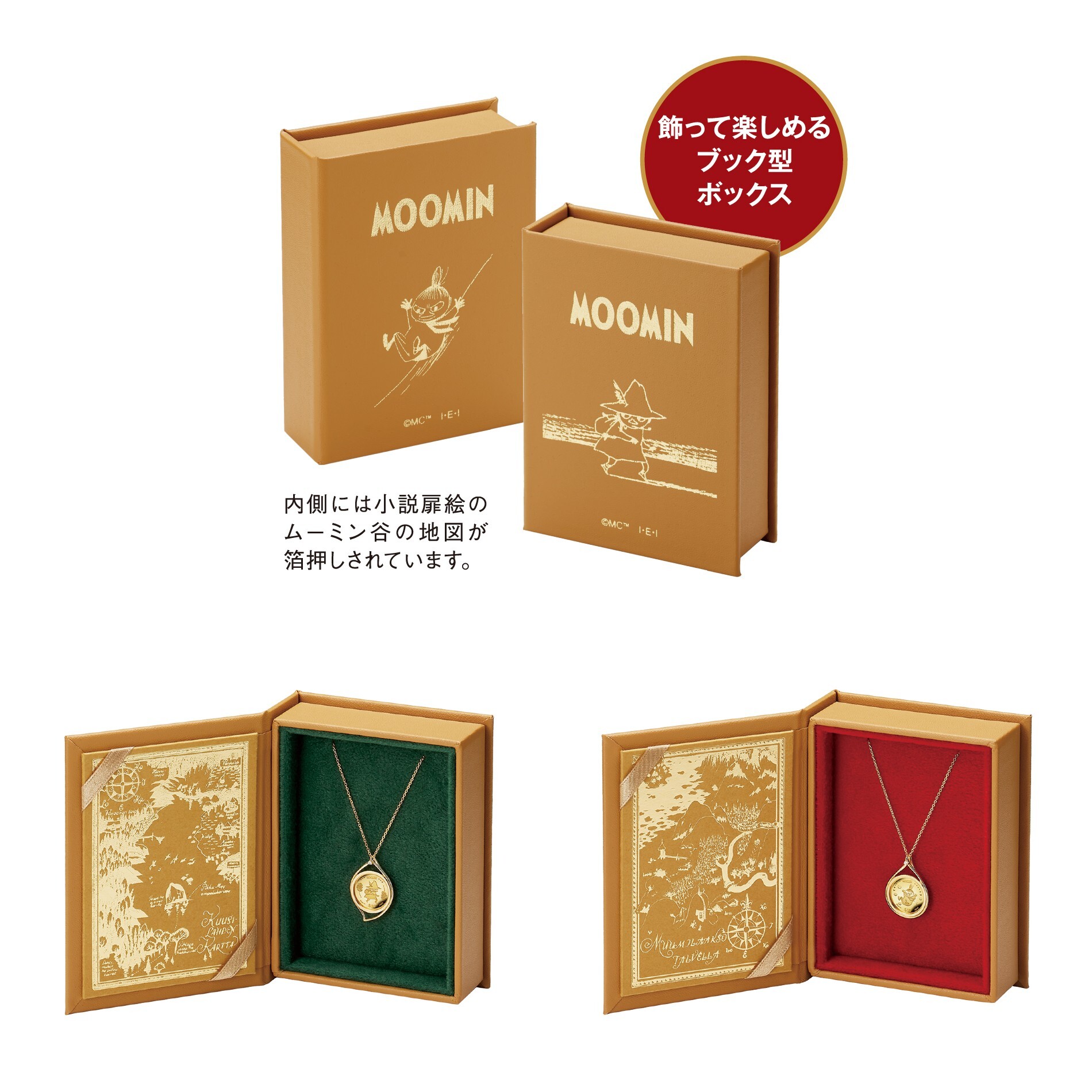 ■ムーミン谷の地図が箔押しされたブック型の特製ボックスを開くと広がるスナフキンとリトルミイのストーリー。中にペンダントを収めてお届けいたします。