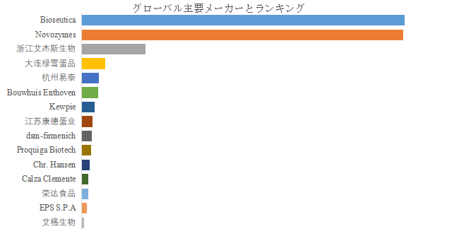 LP Informationのトップ企業研究センターによると、リゾチームの世界的な主要製造業者には、Bioseutica、Novozymes、浙江艾杰斯生物、大连绿雪蛋品、杭州易泰、Bouwhuis Enthoven、Kewpie、江苏康德蛋业、dsm-firmenich、Proquiga Biotechなどが含まれている。2024年、世界のトップ5企業は売上の観点から約83.0%の市場シェアを持っていた。