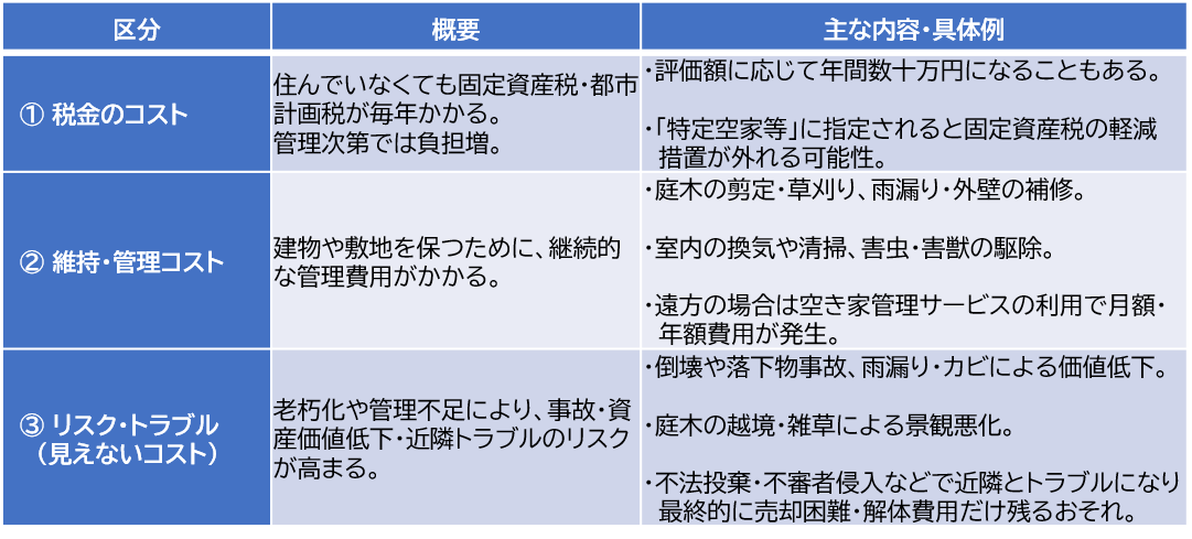 2. 相続空き家を放置すると増える「3つのコスト」
