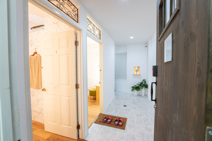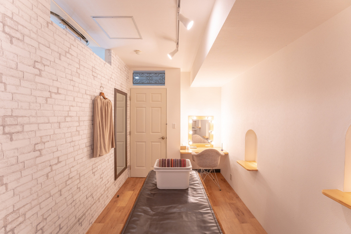 有名番組の撮影にも使われた、南欧風のしっくいの壁にアイアンアイテム、木製ドアなどナチュラルで、質感のある落ち着いた内装の室内が自慢。エステティシャンや整体師、セラピストのためのレンタルスペースとして、美と健康を提供をサポートします。
