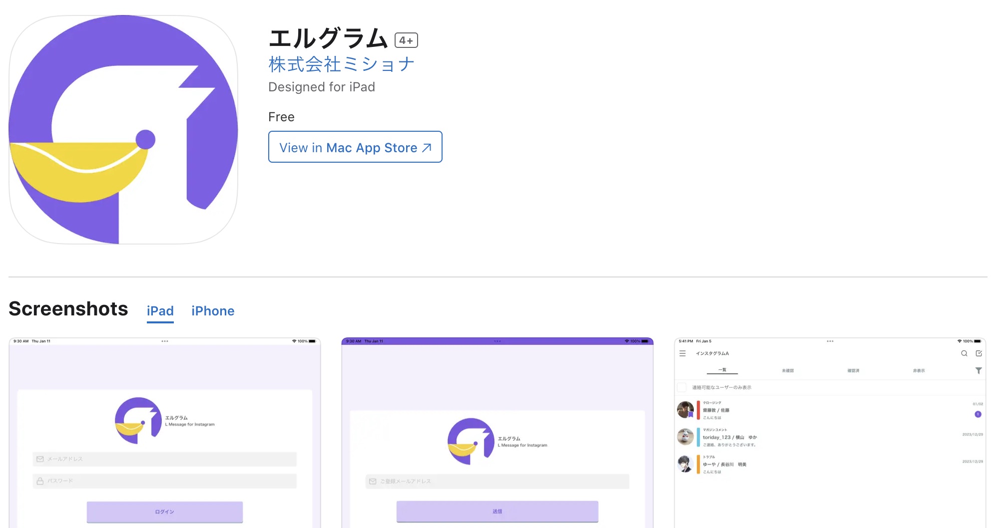 株式会社ミショナ(代表:鈴木隆宏)が開発・提供するエルグラムのiOSアプリを2024年1月8日(月)にリリースしました。
