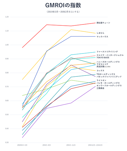・一方で、コロナ第3波に見舞われた20年12月以降、4社でGMROIが悪化した