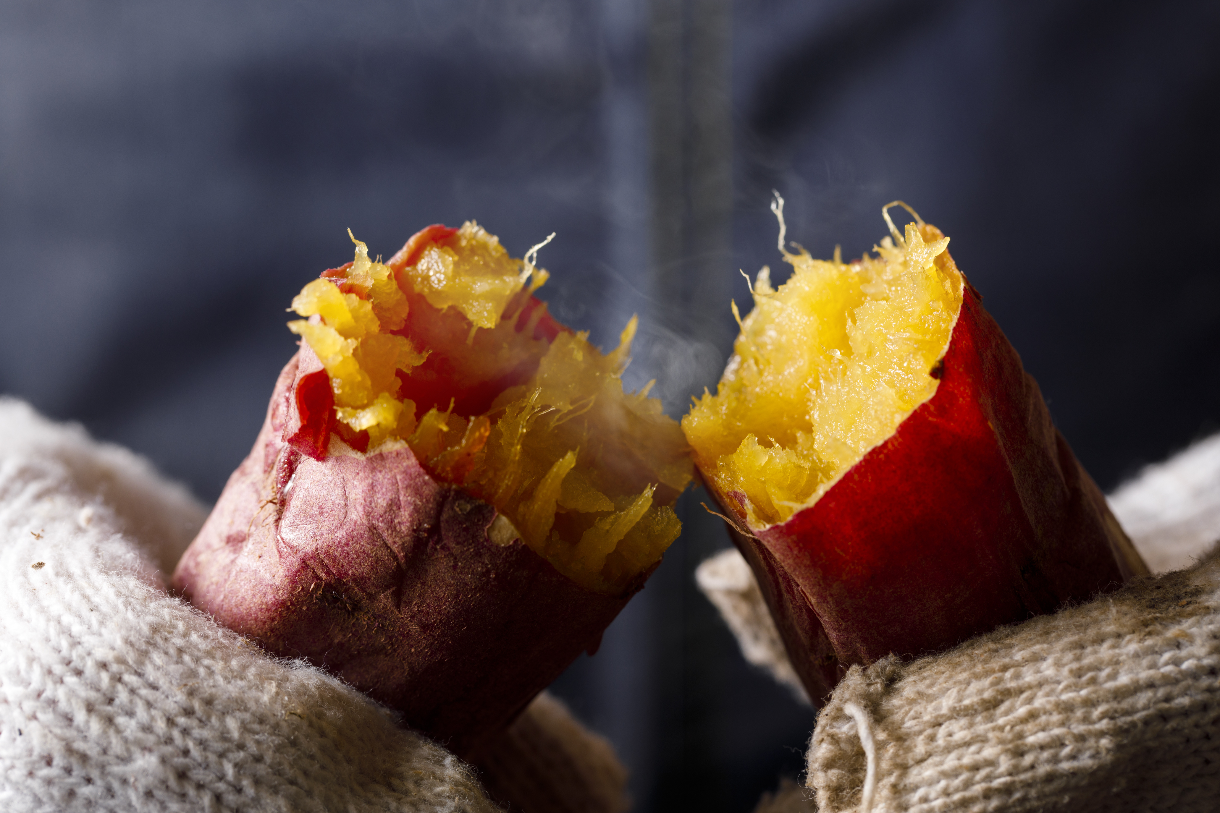 能登の土で育てた紅はるかを天然の貯蔵庫で熟成し、じっくり焼き上げた焼き芋。
