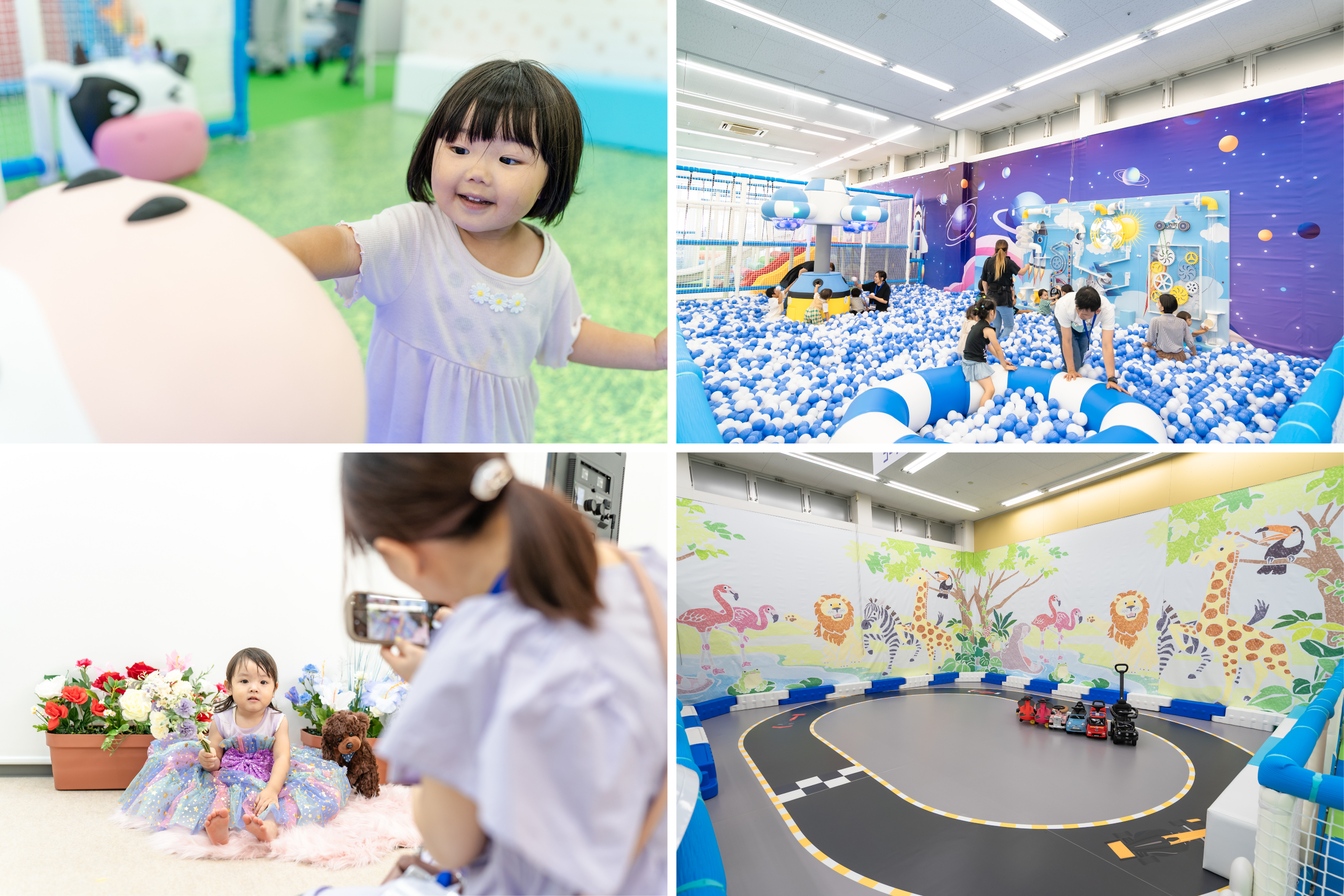他にも追加料金なしでご利用いただけるカラオケやアーケードゲーム、風船ハウスやパンダメリーゴーラウンドなど約30種類以上もの楽しい遊具を導入。さらに店内には飲食が可能な飲食コーナーを設置。飲食持ち込み自由なので、遊び疲れた際にはお昼休憩やおやつタイムなどひと休みいただけます。
