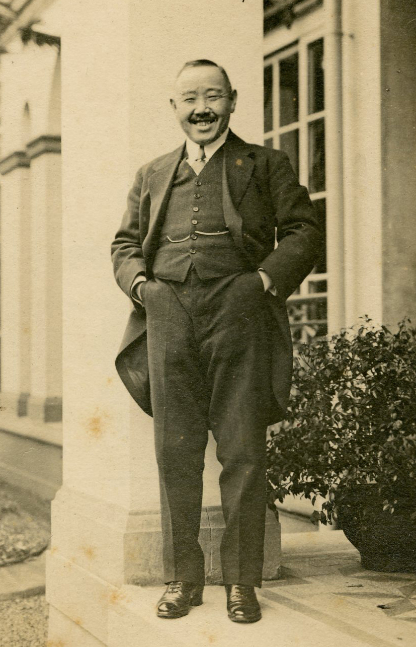 廃業に伴って、提携していたアメリカン・タバコ社の日本での代理人は帰国することになった。写真には、代理人と村井家・村井兄弟商会の中心人物が揃って写っている。