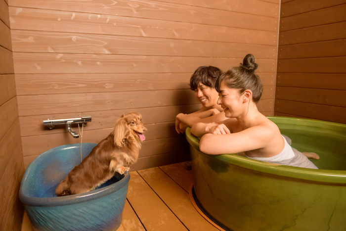 湯治の名湯に、わんちゃんと泊まれる温泉宿です。屋内ドッグランやセルフグルーミングコーナーなど、わんちゃんが喜ぶコンテンツをご用意し、お食事も寝る時も、愛犬と特別な時間を過ごせます。わんわんラウンジでは、チェックイン時や湯上りどきなどに自由に利用できる無料のドリンクをお楽しみいただけます。客室はわんちゃんに優しいお部屋にリニューアル。また、温泉では内湯と露天風呂のどちらも楽しめる贅沢な貸切風呂に、わんちゃん用の可愛らしいお風呂もご用意。愛犬と一緒にプライベート空間で温泉を楽しむことができます。