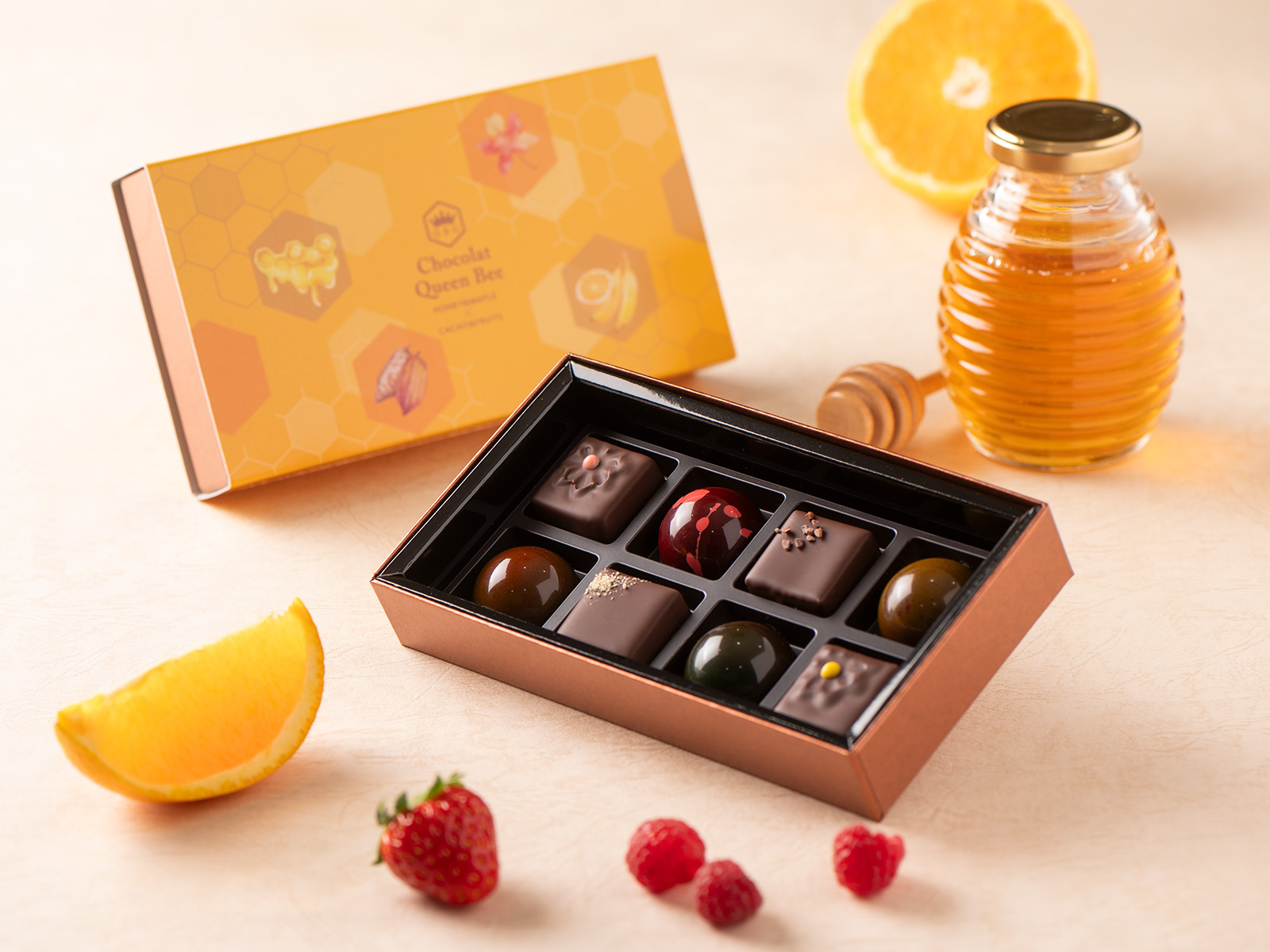 はちみつ・メープルシロップの専門メーカー 株式会社クインビーガーデン(本社:静岡県静岡市、代表取締役社長:青木 均)は、直営洋菓子店「パティスリーQBG」にて、自社厳選の天然甘味料と様々なフルーツのマリアージュをお楽しみいただけるチョコレート「ショコラクインビー」を発売いたしました。