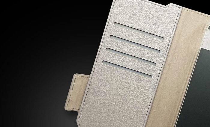 フリップの内側には、4つのカードポケットを用意し、使いやすさをさらに高めました。名刺や交通系ICカードなど普段使いするカードが十分に入れられます。