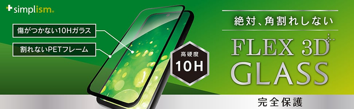 PETフレーム+ガラスの複合素材で、ディスプレイをフルカバーする絶対角割れしない究極の立体成型最強プロテクターです。強化ガラスで画面の広範囲を保護し、端末本体の形状に沿った立体成型のPETフレームが周りを覆うことで、角からの落下や衝撃で起こる「角割れ」を防ぎます。