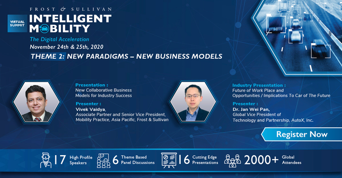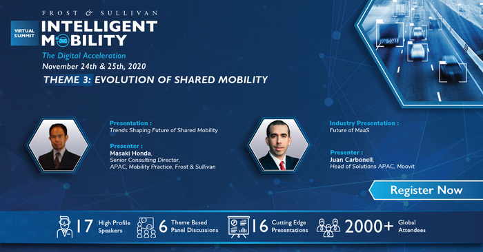 To understand how digitization is reinventing the mobility landscape, the theme of this year’s Frost & Sullivan’s Intelligent Mobility Summit 2020 is “Intelligent Mobility: The Digital Acceleration.” The two-day online summit, scheduled to be held on November 24-25, 2020 will offer unique insights into the role of digital technologies in helping stakeholders, particularly across the Asia-Pacific region, navigate the new normal and shape the future of mobility in a post-COVID scenario.