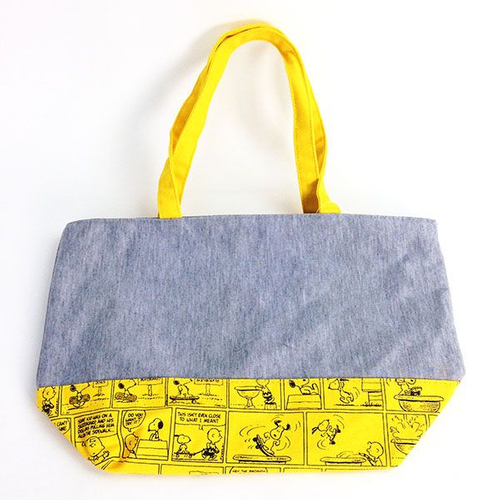 スヌーピーのコミック柄が底布にデザインされたトートーです。グレートイエローのコントラストがPOPですね。サイズは16.5×35×12cmの小さめトートーなので、ちょっとしたお買い物や、サブバッグとして使えますね。