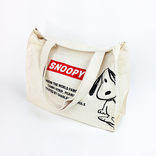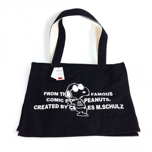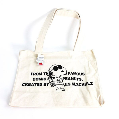 ジョークールのスヌーピーがデザインされた、シンプルなキャンバストートーです。持ち手が長めなので、肩掛けもできてしまう優れもの♪サイズは32×32.5×13㎝の使いやすい大きさです。