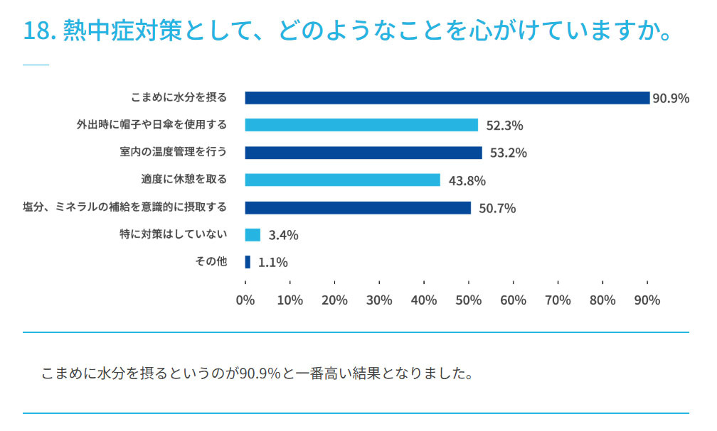 熱中症対策としてこまめに水分を摂るという人が90.9%