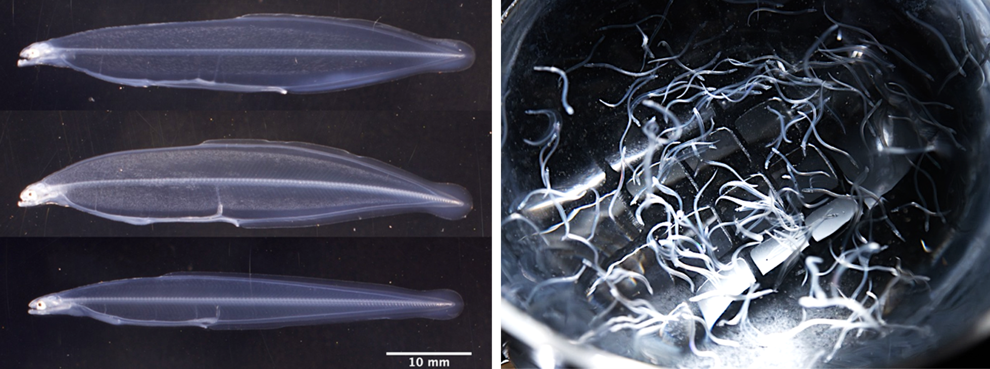 ウナギの完全養殖は、受精卵を得てシラスウナギにするまでの仔魚期の飼育が一番難しいとされており、その期間の飼料が生残率、成長速度、シラスウナギへ変態するまでに要する日数を大きく左右します。一般的なウナギ養殖に利用可能なシラスウナギを得るまでに、長い期間と多大な労力や光熱費を要することが人工種苗生産の高コスト化の要因となり、実用化ができていません。