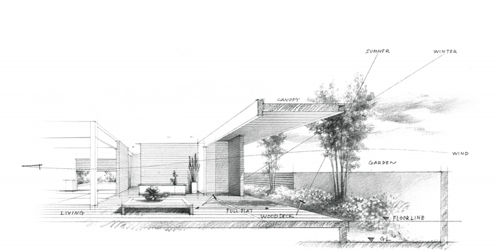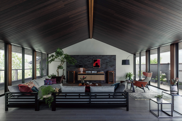 「ダイナミックな屋根の下、室内から外部軒先まで視覚的に連続した住空間が内と外の生活空間を緩やかにつなぎ、日常の中で自然を身近に感じる暮らしを実現します。平屋の場合にはさらに庭や植栽とのつながりも楽しめるので、平屋の『KOKAGE LOUNGE』の人気も高まっています。」(東京南支店・大塚 篤志)