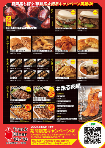 肉屋直営の本格的肉料理があなたの町に!走る肉屋 「TruckDiner10/10(トラックダイナージュージュー)」が 活動拠点を拡大&イベント出店依頼受付開始!