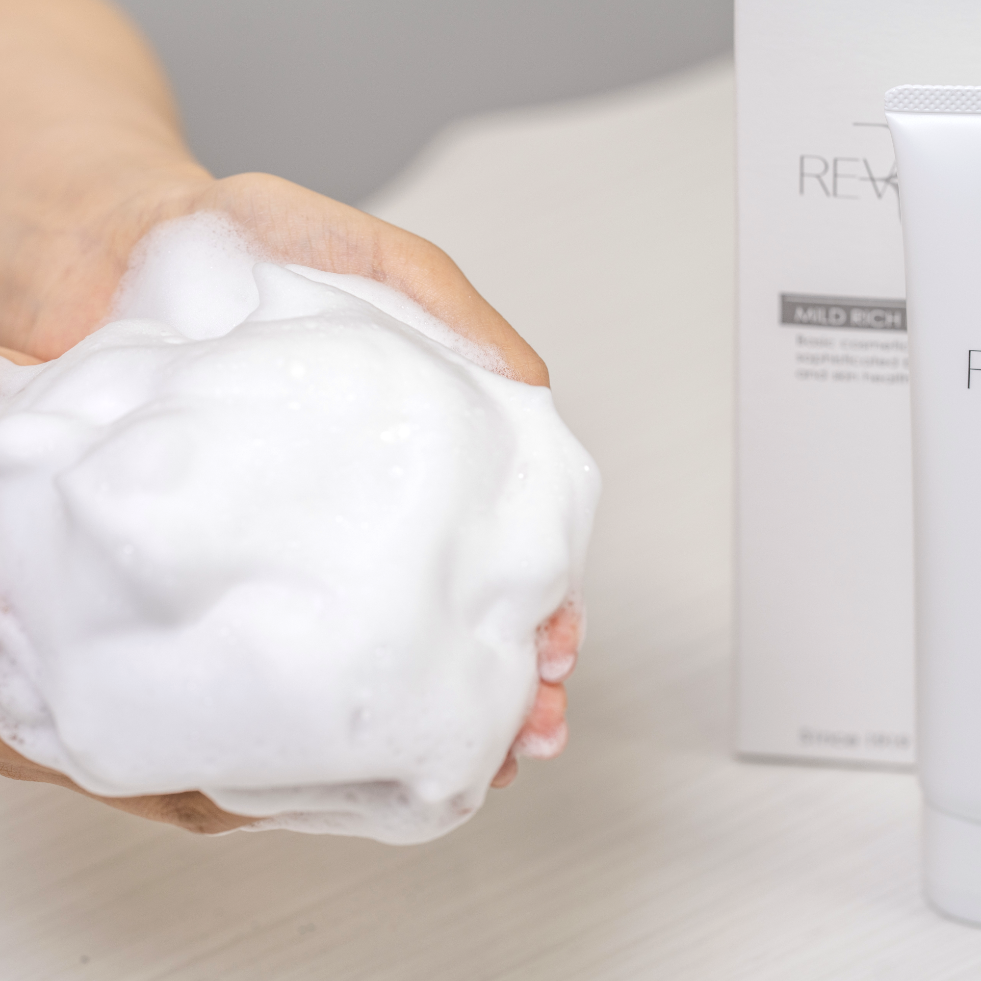 REVISISの洗顔フォームは、濃密で弾力のある泡がで、肌への摩擦を減らしながらしっかりと汚れを落とします。