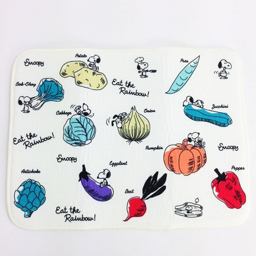 野菜に乗ったスヌーピーがキュートなデザインです。あちこちにスヌーピーがいて、楽しくなります。