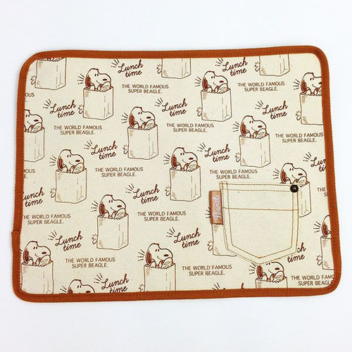 人気のランチタイムシリーズのデザインがふんだんに使われたランチョンマットです。アイボリーの地にブラウンの縁取りがナチュラルですよね。ダイニングの雰囲気を壊すことなく使えるシンプルさです。サイズは30×40cmで、右下のポケットにはナイフやフォークを入れることもできちゃいます。