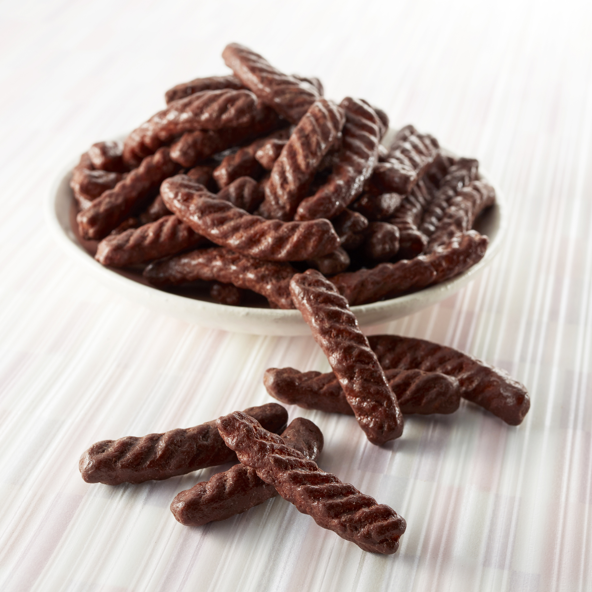 塩味とマイルドチョコレートの甘さの甘じょっぱい味わいがクセになる、「やめられない、とまらない♪」おいしさです。