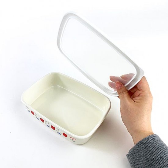 サイズは14×19×4.5cm。保存容器として使えるほか、このまま器として食卓に出すこともできるかわいさです。