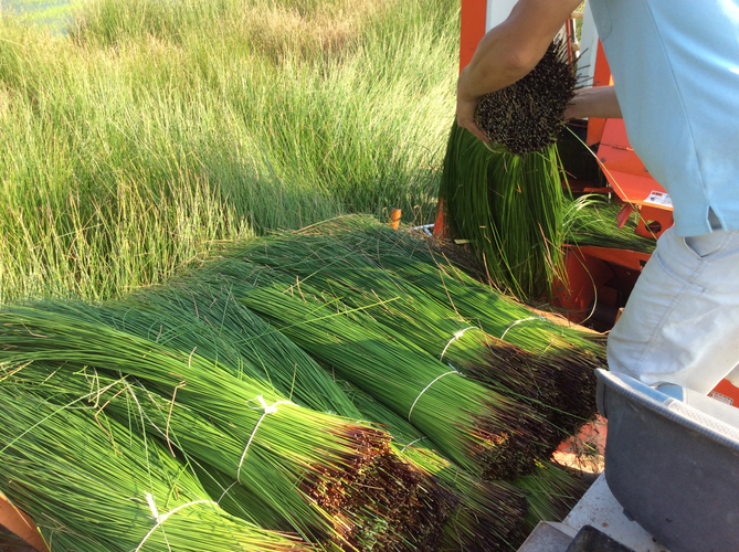 和歌山にいぐさ産業はなく、国産畳表の仕入れ先である熊本のいぐさ農家による支援や地元の方々の協力を得て試行錯誤の末、4年間をかけて畳表を作ることに成功しました。
