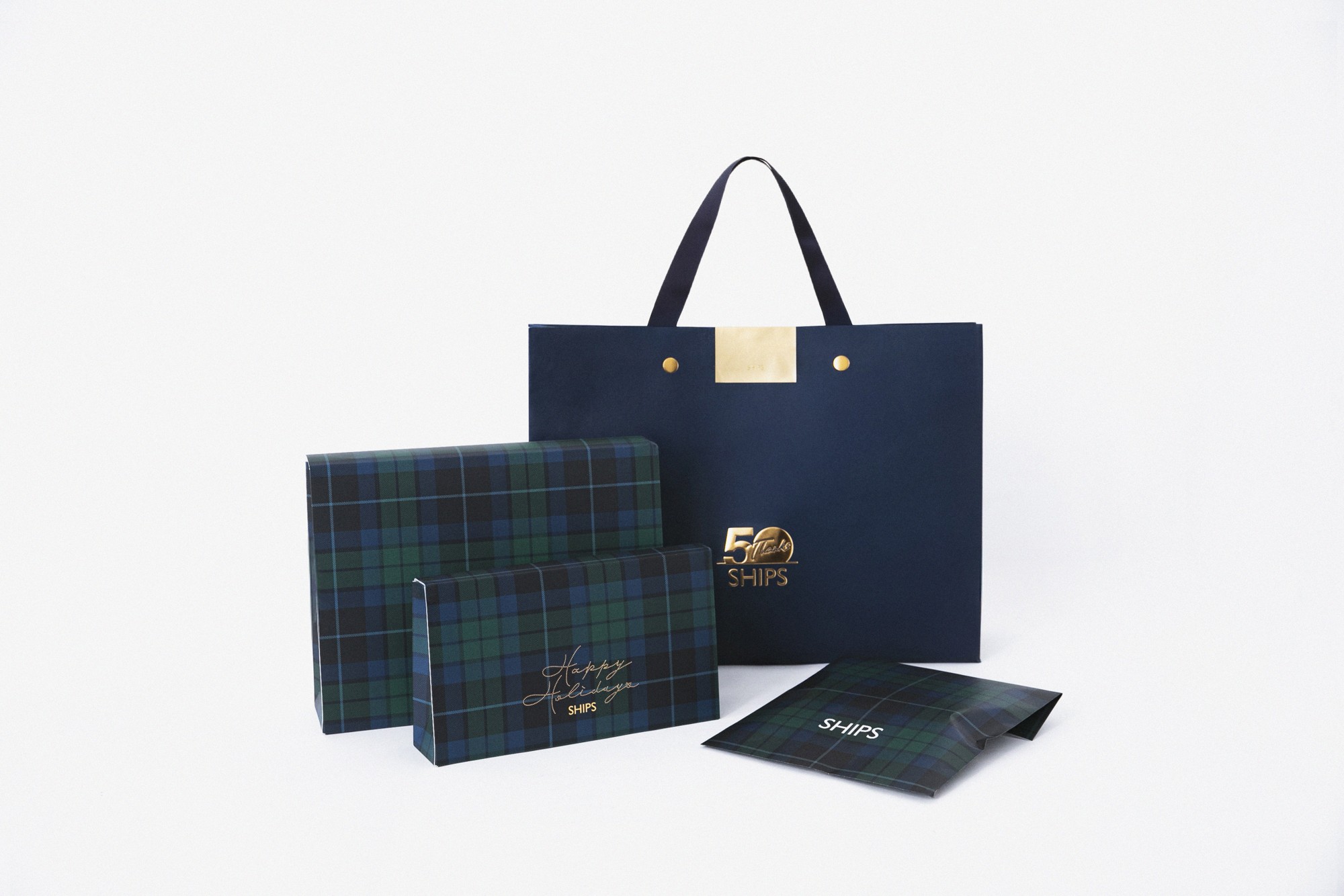 ハウスタータン“SHIPS”をデザインに用いた50周年記念ショッパーと期間限定ギフトボックスをご用意しました。
