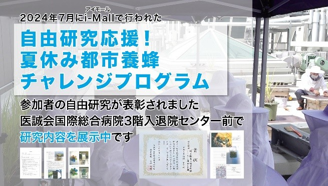 医療法人医誠会(本社:大阪府大阪市、代表者:谷 幸治)は、2024年7月にi-Mallで実施した「自由研究応援!夏休み都市養蜂チャレンジプログラム」に参加した中学生の自由研究作品を展示しています。展示期間は2025年3月から4月30日(水)まで、場所は医誠会国際総合病院南棟3階の入退院センター前です。一般の方も入っていただける場所(要マスク着用)ですので、ぜひご来場ください。