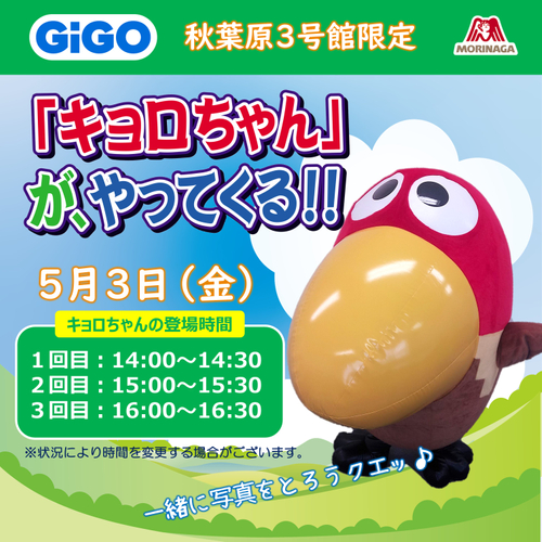 以下の日程で森永製菓「キョロちゃん」がGiGOのお店に来店!