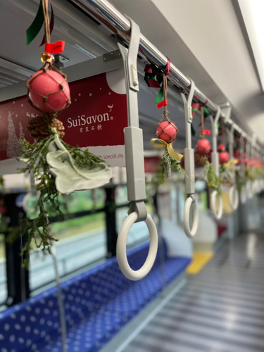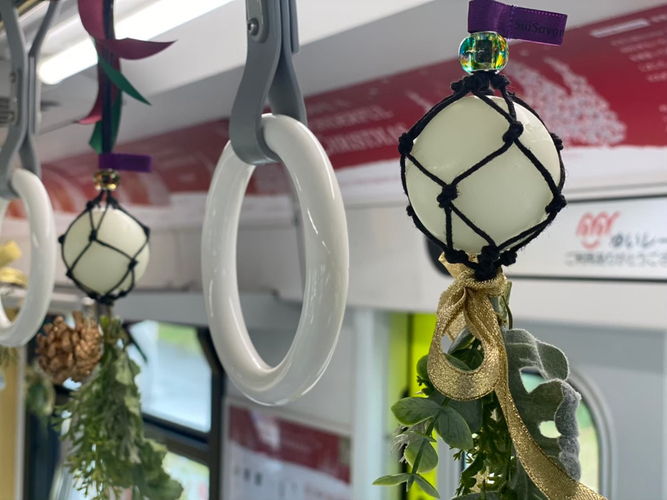 ・2両編成のうち1両に、SuiSavon首里石鹸の「PERFUME BALL 香り玉」に、クリスマスの季節感を演出した飾りつけを施した約100個を設置します。