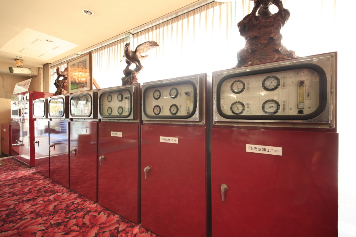 (ラドン温泉)ラドン吸入室では、安全なラドンガスを10分程度吸入することでサウナ以上の発汗があり1~2時間ほど続く。この強いデトックスにより血液を綺麗にします。若い女性にも『ダイエット温泉』ともよばれ人気があります。