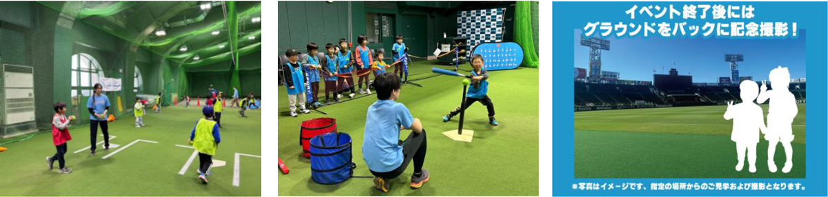 3回目の開催となる今回の体験会では、全10種目のうち、ボールを投げる・捕る・打つを中心とした「野球」と、楕円形のボールを参加児童で協力しながら渡し合う「タグラグビー」(新種目)を阪神甲子園球場3塁ブルペンで体験いただきます。また、今回はイベント終了後に球場内のグラウンドレベルでも記念撮影をお楽しみいただける充実したプログラムとなっています。