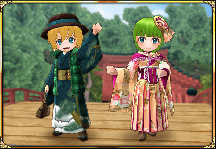① 「エレメンタルナイツR」ゲーム内でお正月らしい風景やおしゃれを装備してスクリーンショットを撮影