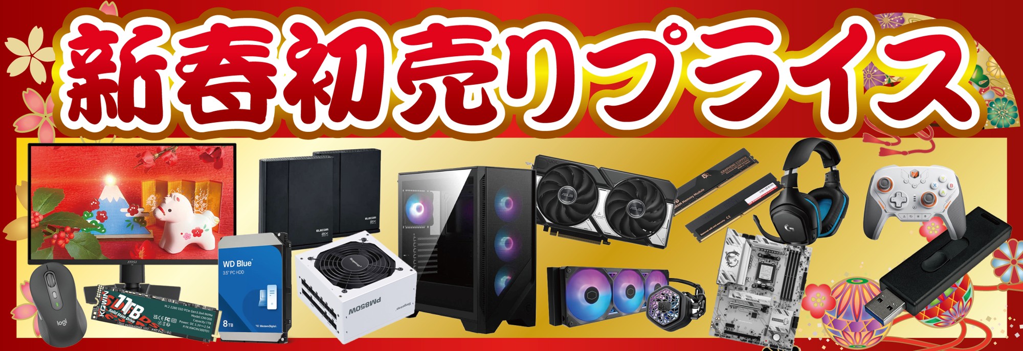 2026年1月12日(月・祝)までのセール期間中、自作パソコンパーツやパソコン周辺機器を「新春初売り」ならではの価格にてご用意いたします。在庫限りの商品もございます。ぜひご期待ください!