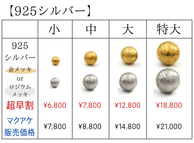 ペンダントトップのサイズは、満月のサイズに合わせて4種類をご用意。