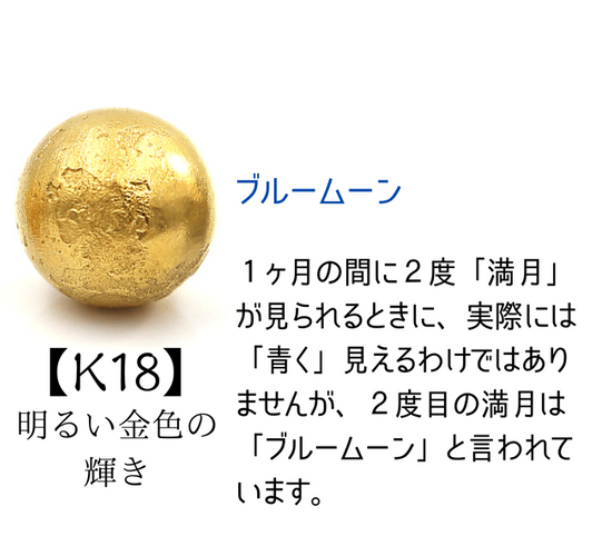 当商品は、リアルな満月を本物素材であるゴールドで表現。満月を、360度鑑賞できるように月の裏側まで細かく再現し、満月の素材には【K24純金】の他、【K18】、【プラチナ900】、【925シルバー】の4種類があります。インテリア、ジュエリーとして楽しめ、素材そのものが持つ資産価値と満月がもつ神秘的な魅力の両方をじっくりとあじわえる存在感ある商品となっております。
