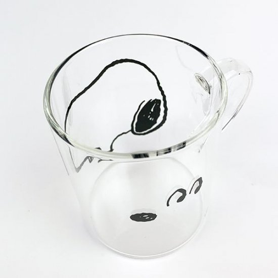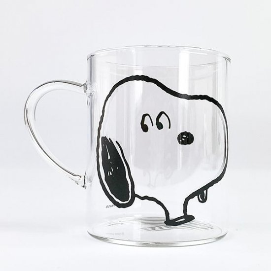 耐熱ガラスのマグもご紹介しちゃいます♪安定感のあるフォルムで、シンプルなスヌーピーのフェイスデザイン。耐熱性なので、温かい飲み物もOKです。