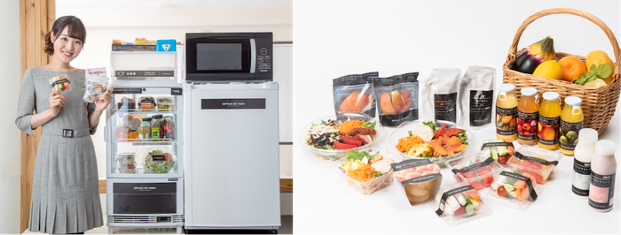 オフィスに冷蔵庫や冷凍庫を設置するだけで、健康と美味しさにこだわったサラダやフルーツ、お惣菜などが定期的に届けられる食の福利厚生サービスです。