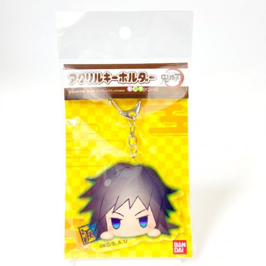 富岡義勇のフェイスがキーホルダーに♪こちらもアクリル製で、子どものような表情にデフォルメされています。