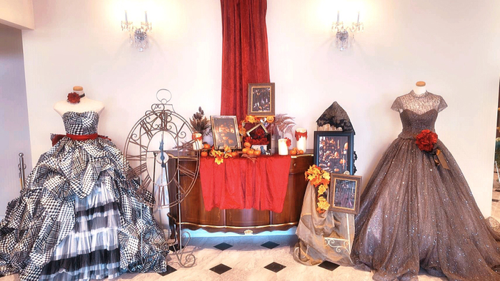 入口にはハロウィン特設フォトスポットを設置。天使の羽、ウィッグ、お洒落なヘッドドレスや仮面、薔薇の花弁など、撮影小物も無料で貸出し!自分の感性で独自の世界観を作るのも楽しい。
