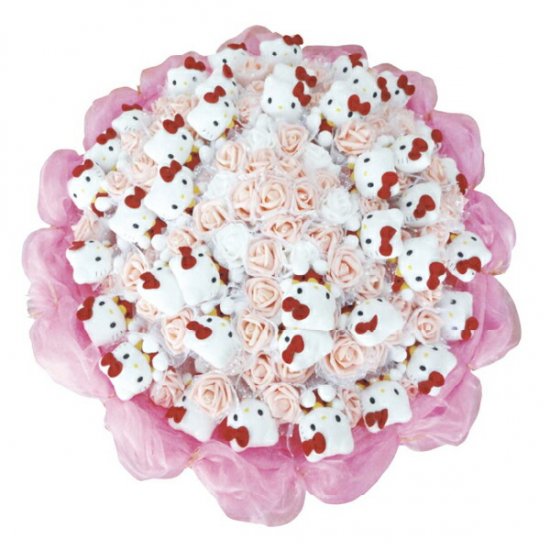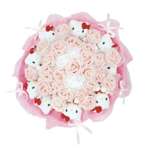 サンリオから、ギフトにピッタリなブーケのご紹介です。ただのブーケではなく、キュートなバラの造花にキティちゃんのぬいぐるみが加わってキュンキュンなブーケになりました。こんな可愛いブーケ貰ったらメロメロになること間違いなしですね。