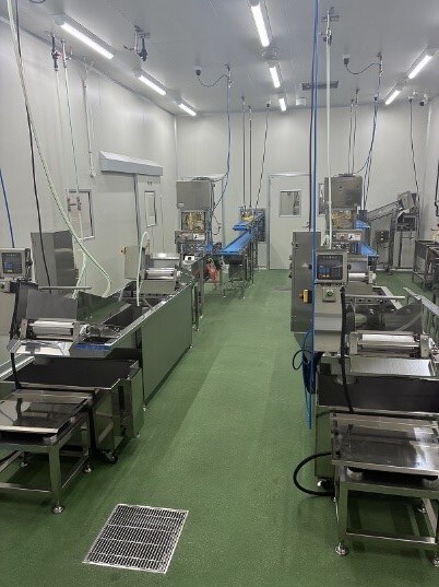 (1) 原料保管~製品を全工程5度帯の冷蔵庫で生産するため、従来よりも消費期限の延長が可能