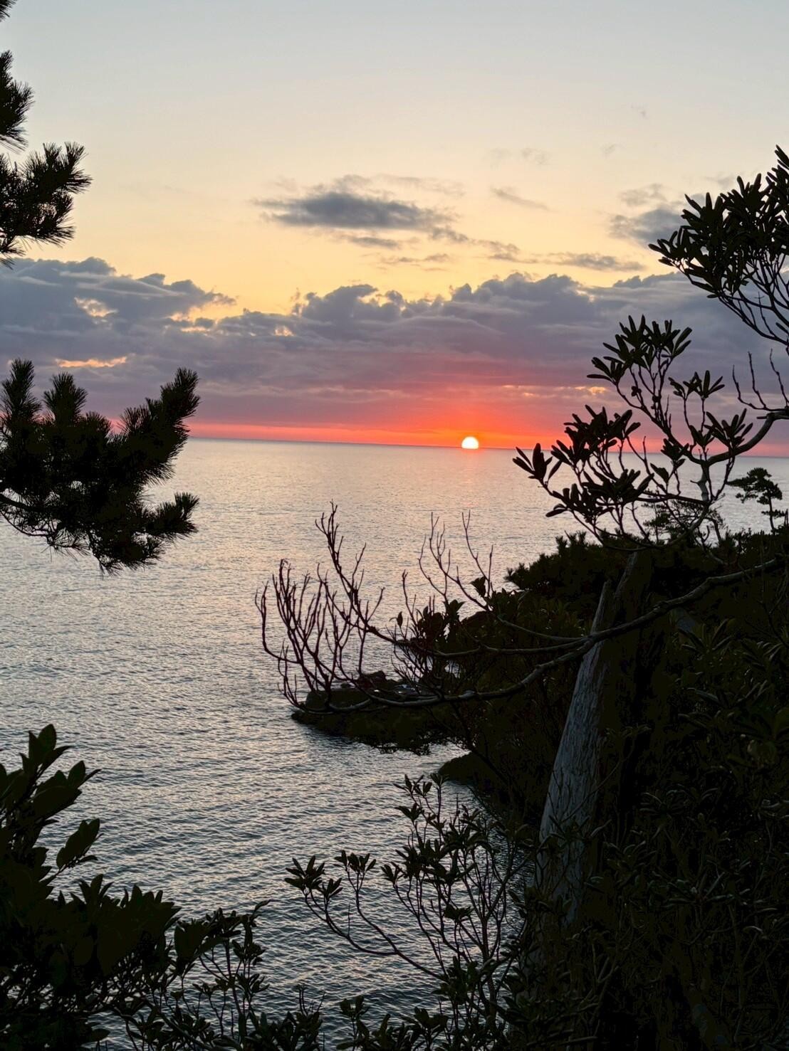 22日は朝から7班に分かれて島内を散策。龍前崎で水平線から昇る朝日を眺めた後、班ごとにクルーザーで島周辺をクルージングしたほか、海岸線に設けられた防波堤など復興状況を見て回ったり、NHKの朝の連続テレビ小説「おかえりモネ」のロケ地を見学したりしました。夜には島内散策で発見した島の魅力を班ごとに発表し、新たな観光資源の発掘や今後の活動計画について議論を深めました。