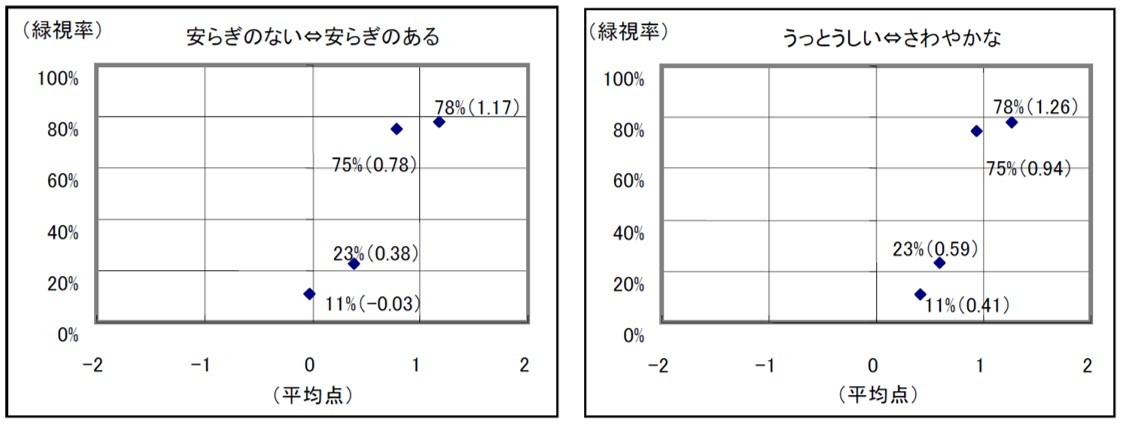 国土交通省:「都市の緑量と心理的効果の相関関係の社会実験調査について」